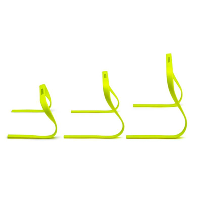 A quality flexy mini hurdle, which is available in 3 heights (15 cm, 23 cm and 30 cm). The almost "unbreakable" plastic material ensures high quality and stability. Due to the elegant and practical flexy design, the obstacle automatically goes up again. So it stands up even if the athlete steps on it. The mini hurdles are ideal for coordination, sprint, jump and agility training. Several hurdles can be optimally combined to form a parcours and are suitable for all age groups. The hurdles are neon green and have a width of approx. 47 cm. The price refers to only one flexy mini hurdle. The appropriate training exercises and other hurdles can be purchased in our shop. Professional teams already train with these hurdles!