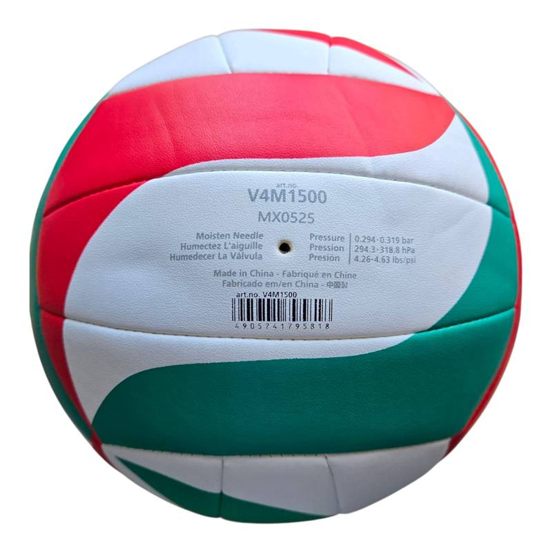 Molten volleyball ball V4M1500 size 4, designed for indoor training and recreational play. PU-PVC Soft Touch material, 18 stitched panels, layered butyl bladder, and tri-color Molten design for optimal visibility.