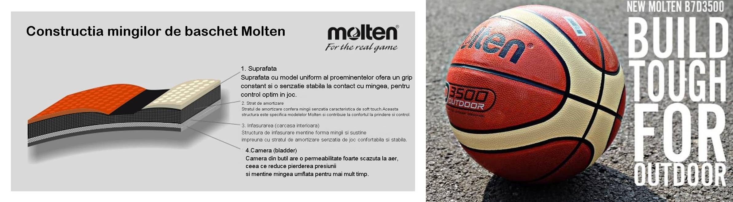 Minge Baschet Molten B6D3500-KS, Mărimea 6, Specială Outdoor, Negru/Argintiu
