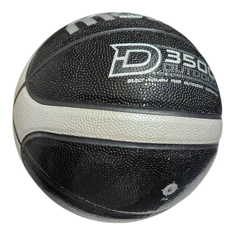 Minge de baschet robustă pentru exterior, cod produs B6D3500-KS, culoare negru/argintiu, cu design modern în 12 panouri și aderență excelentă. Fabricată din piele sintetică durabilă, ideală pentru jocuri intense de streetball, antrenamente și competiții școlare.